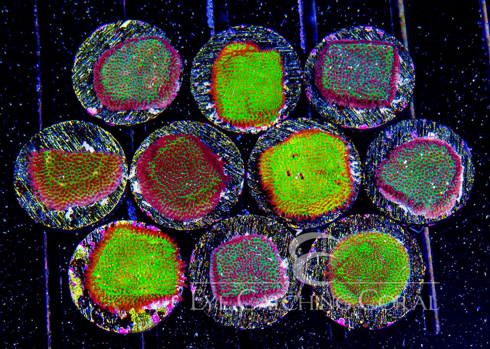Picture is a quality sample and actual coral will vary. Frags will be mounted on 2-2.5" Real Reef Discs.